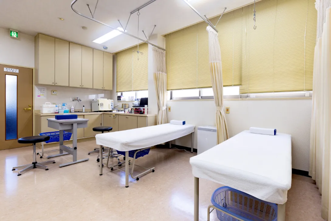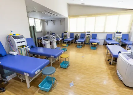 現在、治療用ベッドを13台、牽引器を3台、腰椎牽引器を3台稼働させ、スムーズかつ効率的にリハビリを提供できるよう努めております。